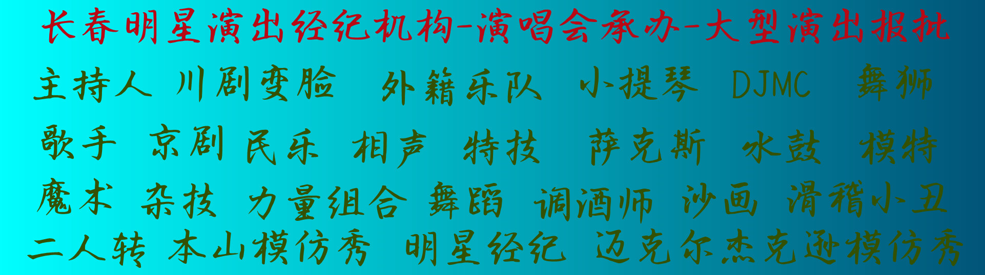 長春演出公司-承接中大型演出策劃執(zhí)行,企業(yè)年會演出,校慶廠慶演出,公司開業(yè)演出,明星經(jīng)紀(jì)演出,晚會,發(fā)布會,答謝會演出,音樂節(jié),啤酒節(jié)演出。